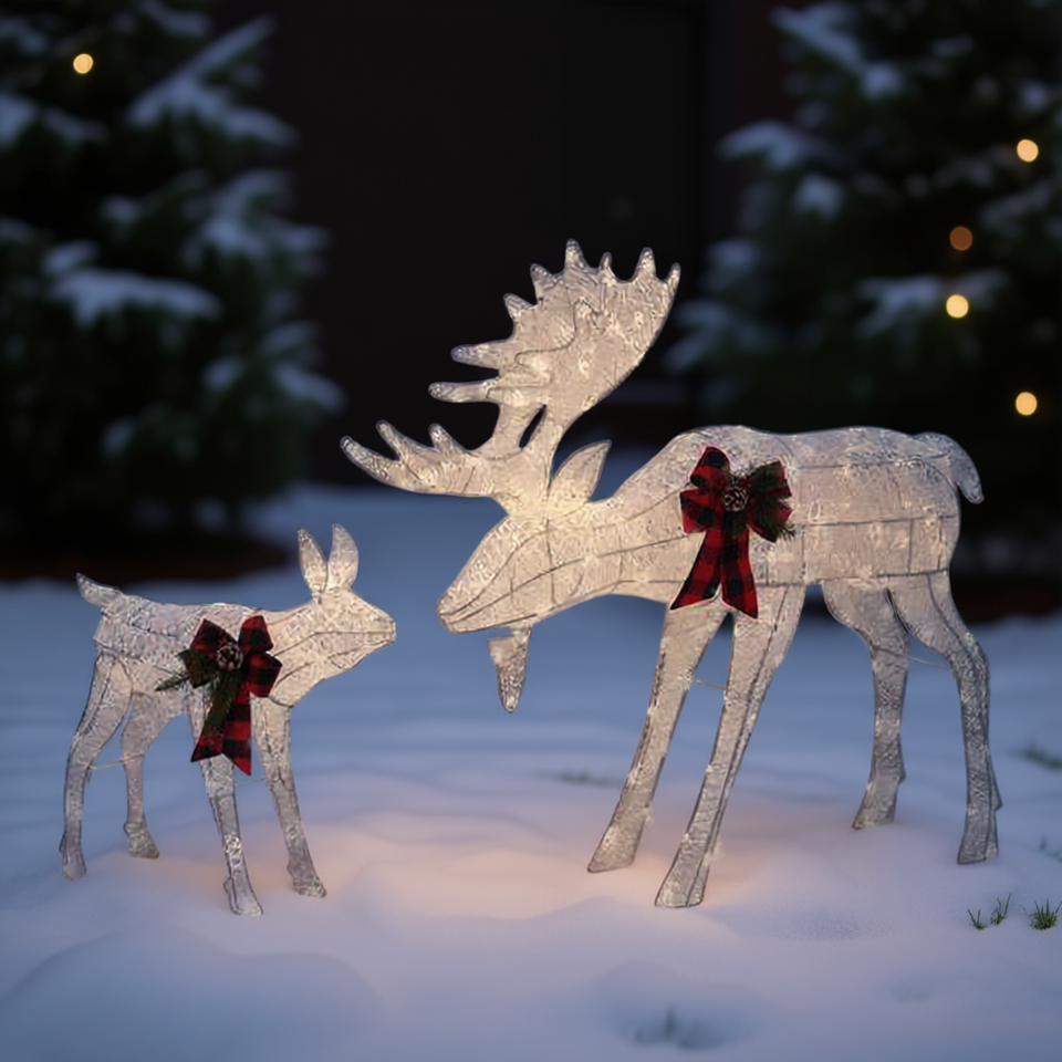 Moose Family 4ft 200LED Leather String Light White Outdoor Holiday Yard Decoration for Garden Decor