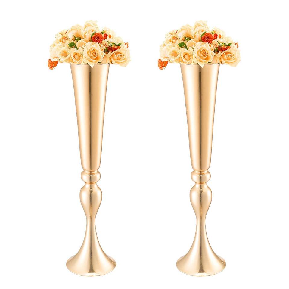 2 Pezzi Vaso per Fiori in Metallo Dorato 56cm/22.05 Pollici, Centrotavola Alto a Tromba per Tavoli da Matrimonio