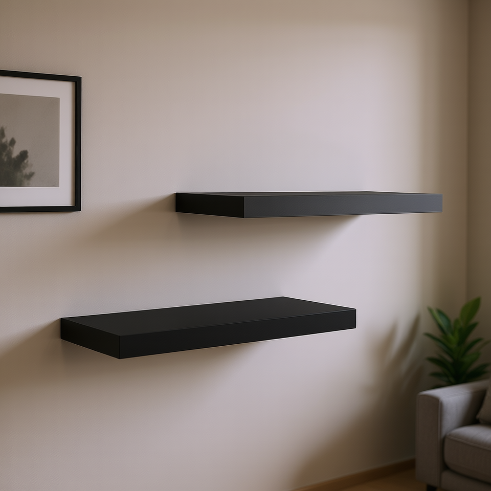 Mensole da parete galleggianti in MDF nero 19,7x9,1x1,5 pollici, mensola espositiva a doppio livello per soggiorno, design minimalista