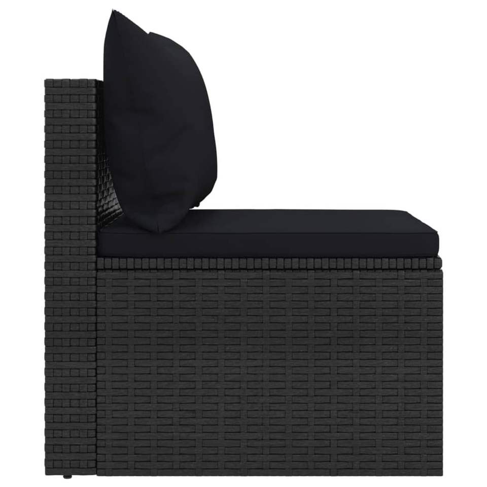 2pcs Black Poly Rattan Garden Patio Middle Sofas with Cushions