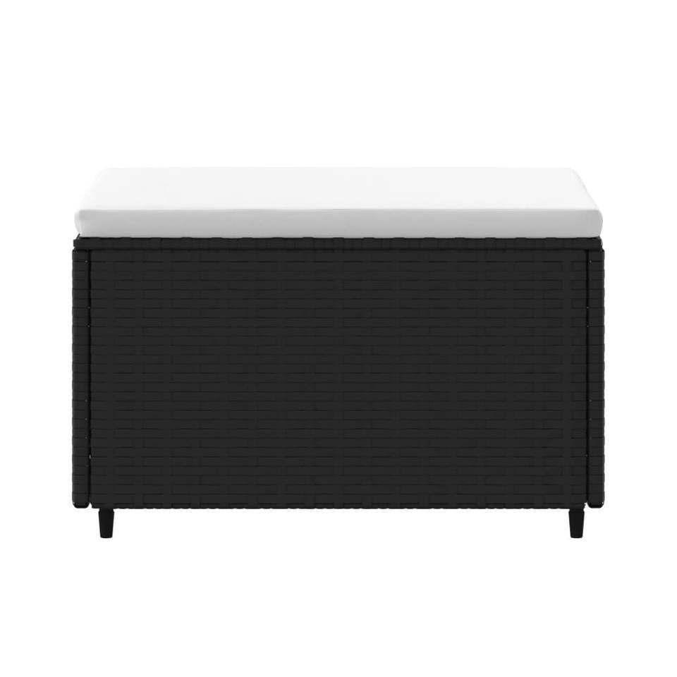 2pcs Black Poly Rattan Patio Footrest with Cushions Comfortable Add-On for Patio Furniture