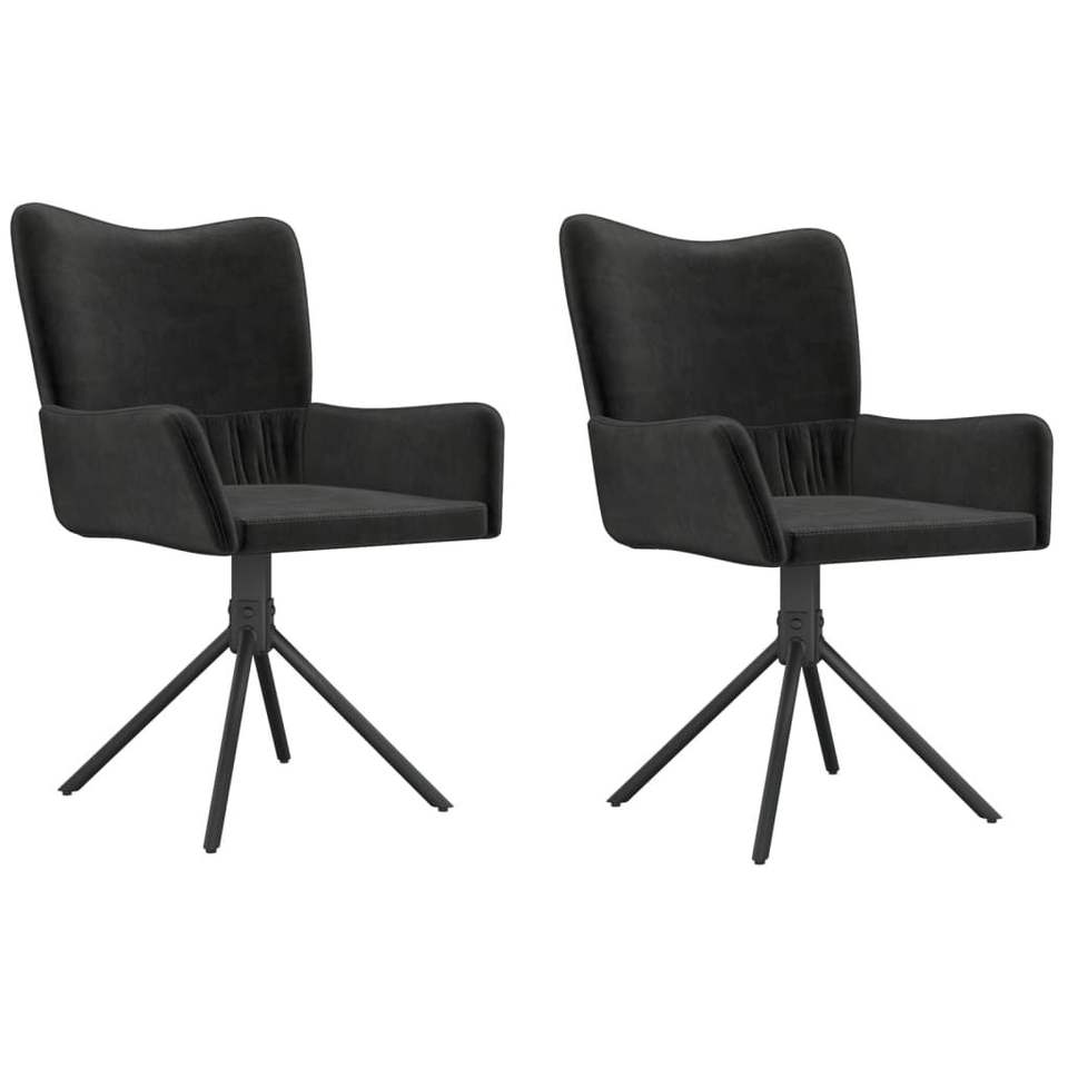 Sedie da pranzo girevoli in velluto nero 2 pezzi
