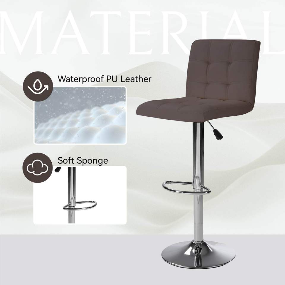 2 Sgabelli da Bar Alti Marrone Caffè con Schienale Imbottito Quadrato e Poggiapiedi - Set da 2 Pezzi