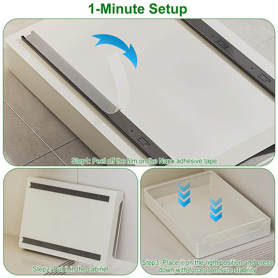 2 Pezzi Scaffale Scorrevole Estraibile in Acciaio al Carbonio per Spezie, Organizzatori per Armadietti con Pellicola Adesiva Nano Fissata