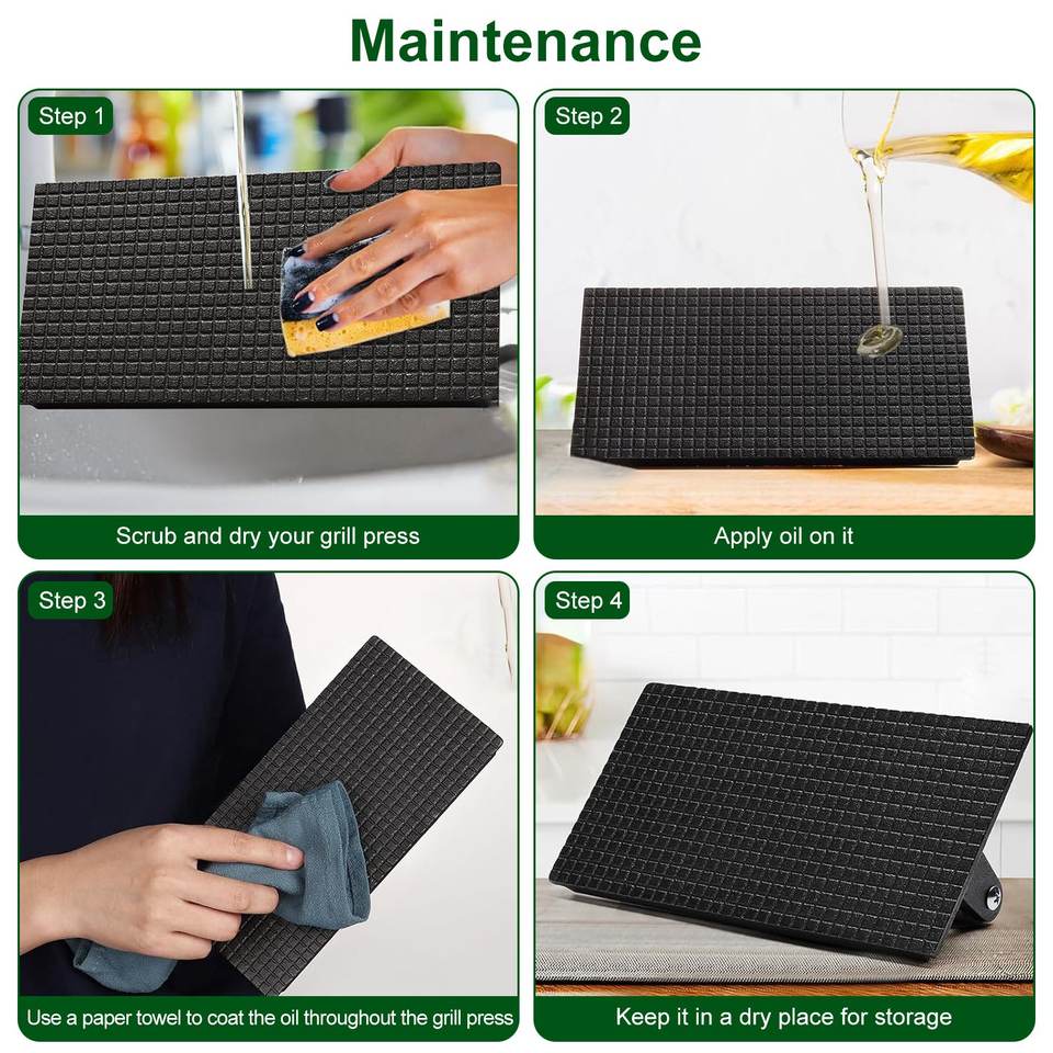 2pcs Cast Iron Outdoor Cookware 7in 8.2x4.25in Rectangular Grill Press Wood Handle 1pc Press Pre-Seasoned Steak Weights Bacon