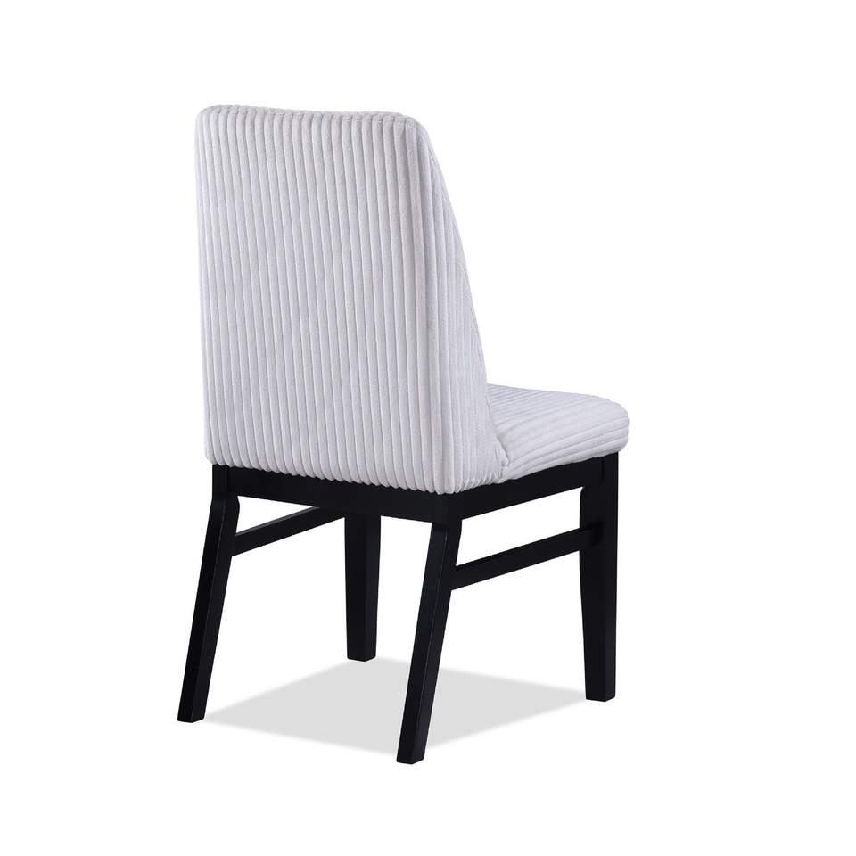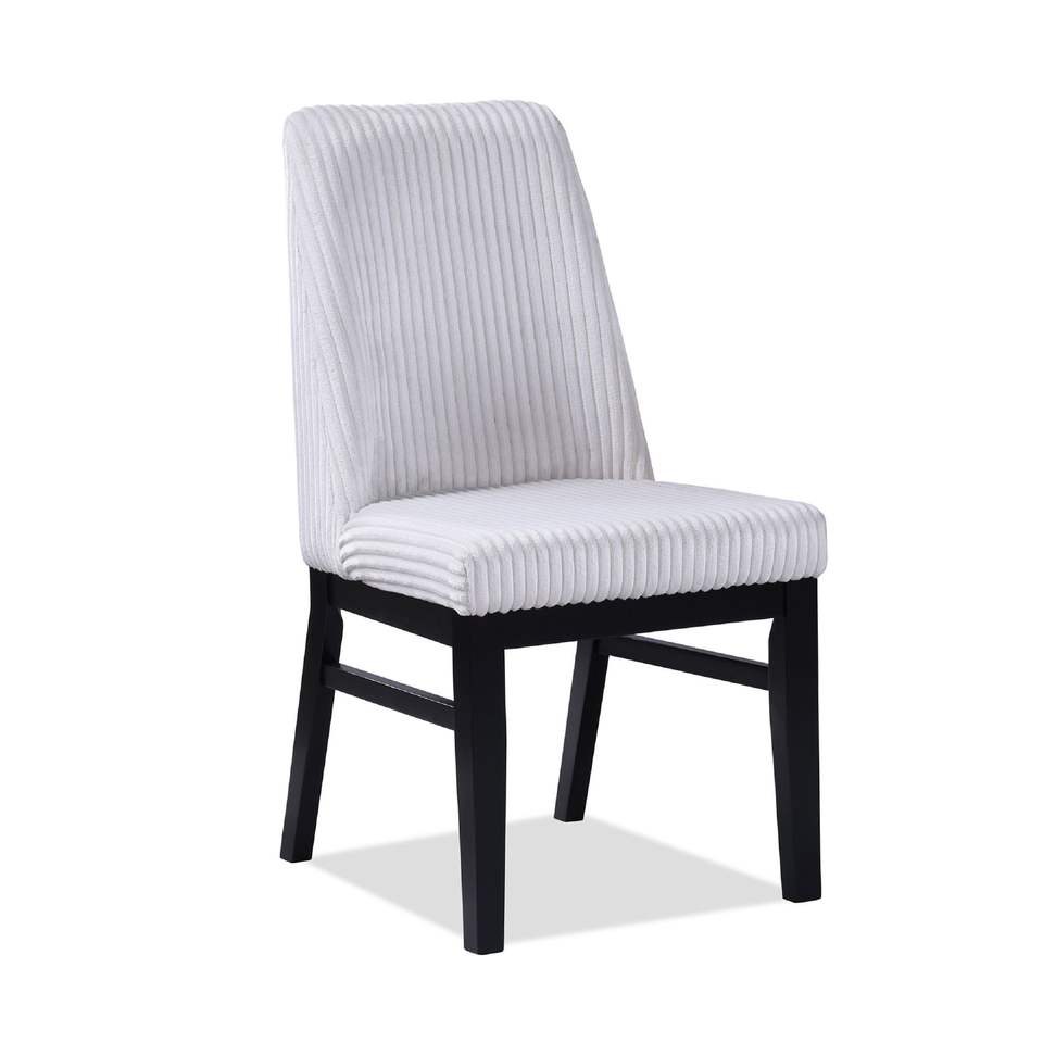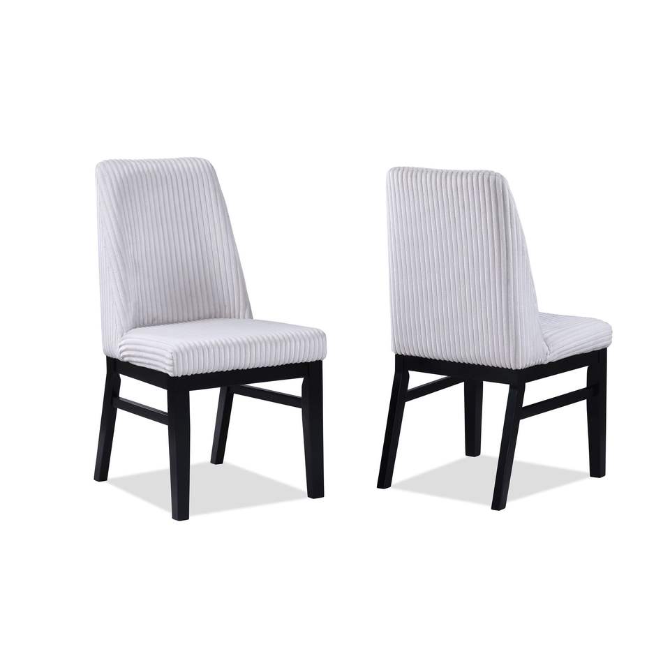 2 Sedie da Pranzo Contemporanee con Schienale Alto, Rivestite in Tessuto Bianco Testurizzato, con Seduta Imbottita e Struttura in Legno per Arredamento Casa