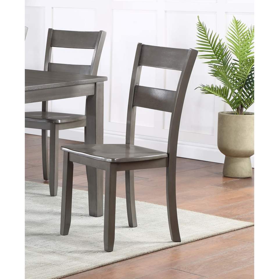 2 Sedie Laterali Grigie in Stile Transizionale con Schienale a Scala in Legno per Sala da Pranzo