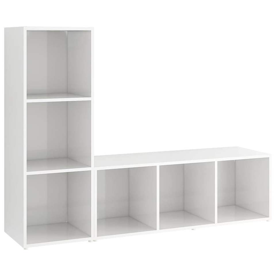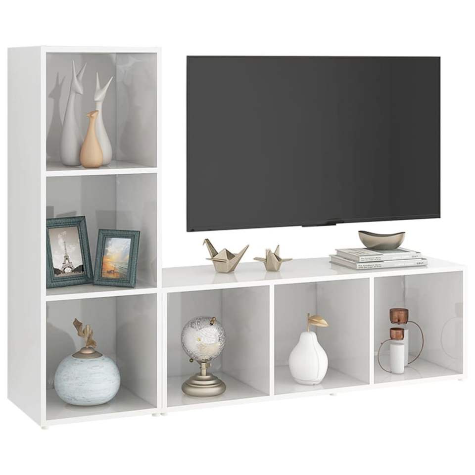 2pcs High Gloss White Engineered Wood TV Cabinets 42.1"x13.8"x14.6" for Living Room