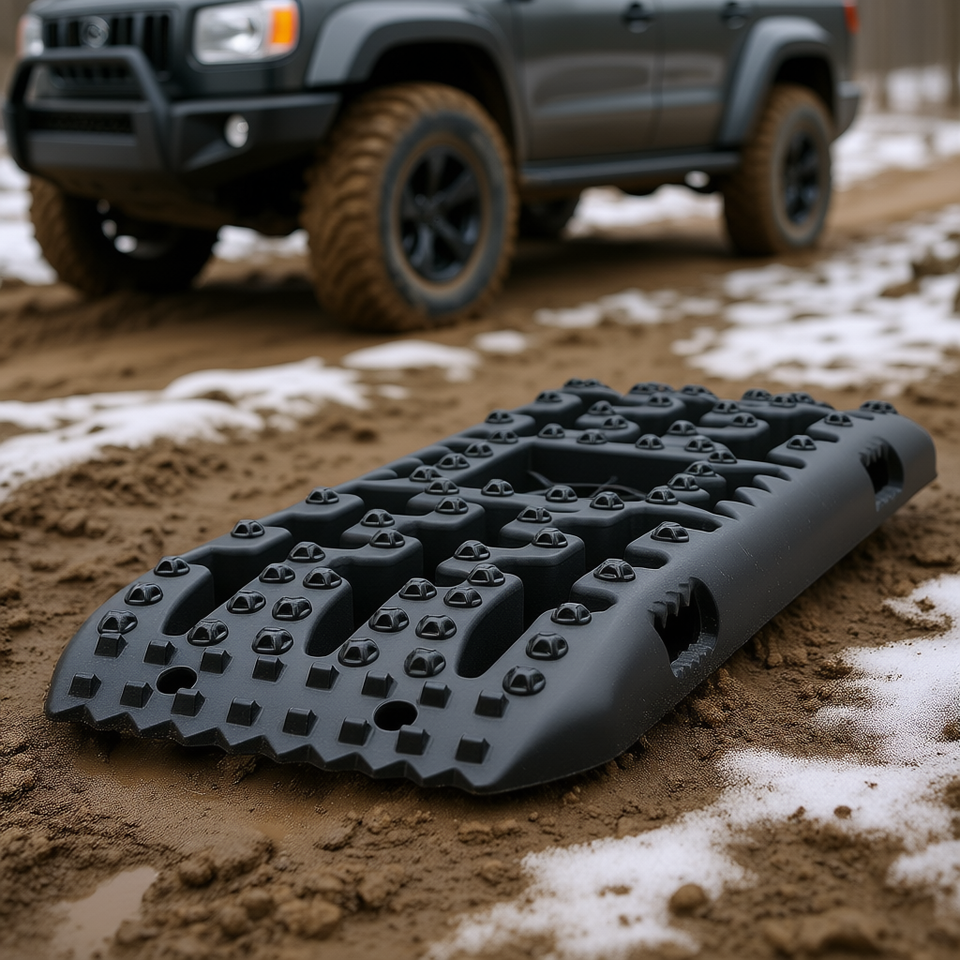 Tavole di Trazione Nere in PP per Fango, Neve e Sabbia - Rampe di Recupero Fuoristrada