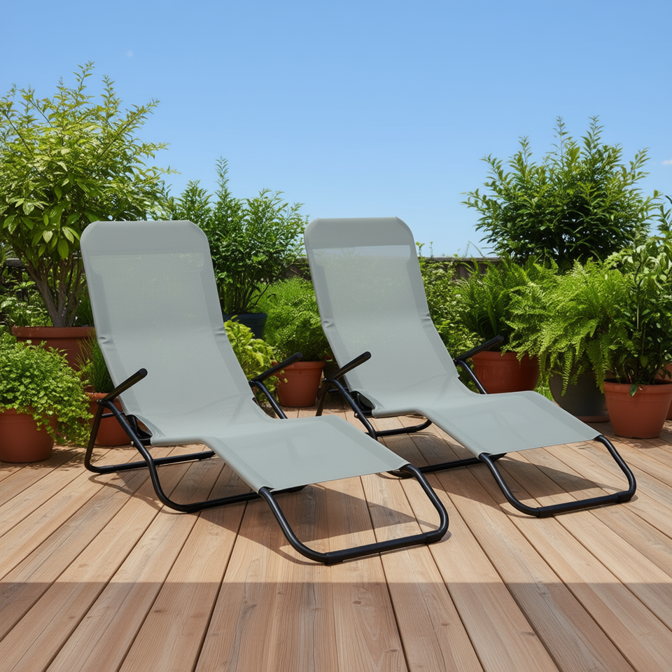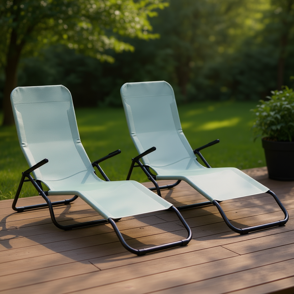 2pcs Portable Sun Lounger Light Green Metal Frame Rocking Design Outdoor Patio Reclining Chair Modern Contemporary