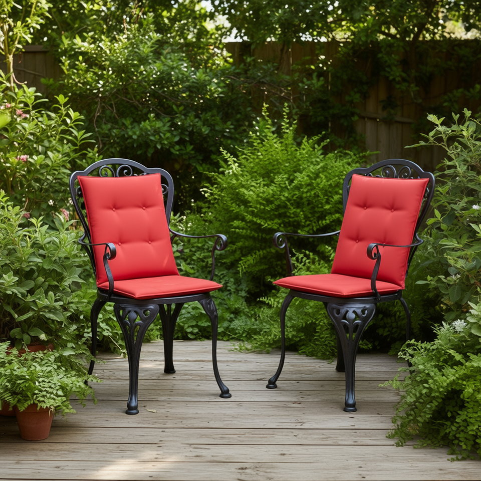 Red Garden Highback Chair Cushions 47.2"x19.7"x1.2" Outdoor Fabric Quilted Pillows Solid Color All Season Use