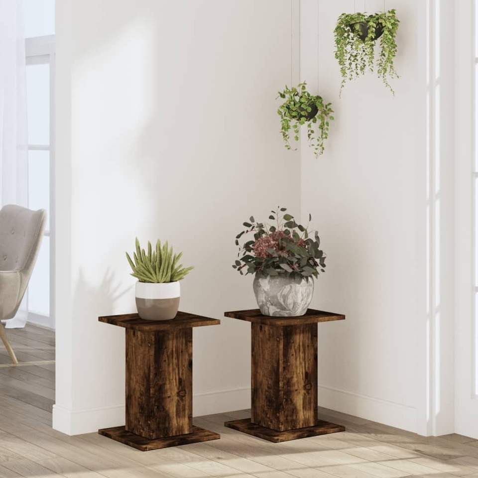 2 supporti per piante in legno ingegnerizzato di rovere affumicato, 11,8x11,8x15,7 cm, vassoi per vasi