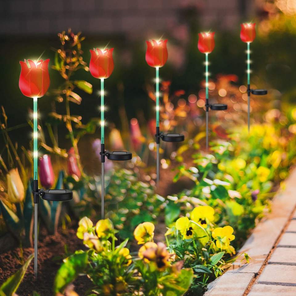2 Pezzi Lampada Solare a Forma di Mulino a Vento per Giardino, Impermeabile, a Forma di Tulipano, per Paesaggistica