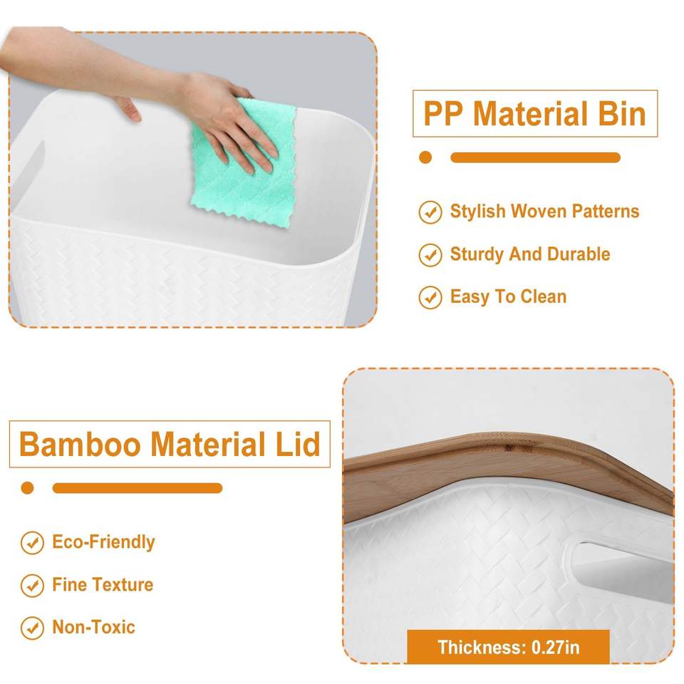 2 contenitori impilabili in plastica con coperchio in bambù, porta accessori per camera da letto, contenitori per taglieri