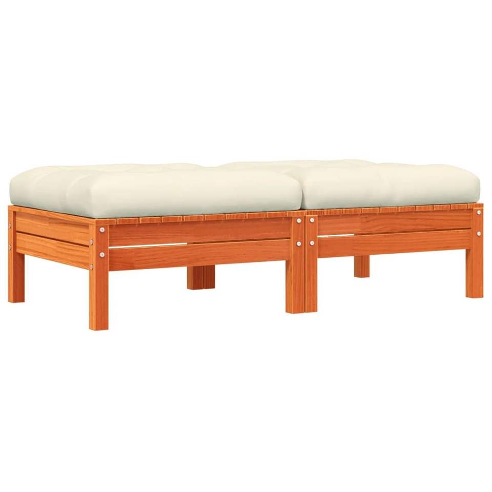 2pcs Wax Brown Solid Pine Wood Patio Footstools with Cushions Patio Furniture Set