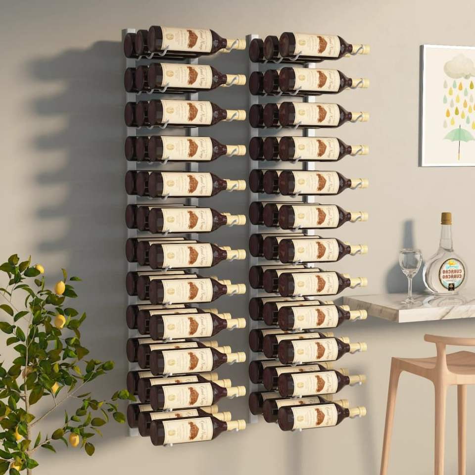2pcs White Iron Wall Mounted Wine Rack for 36 Bottles