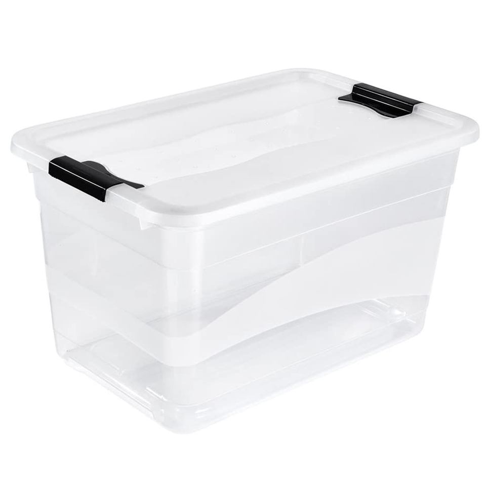 2x Cubo portaoggetti con coperchio, plastica, trasparente, 52 l