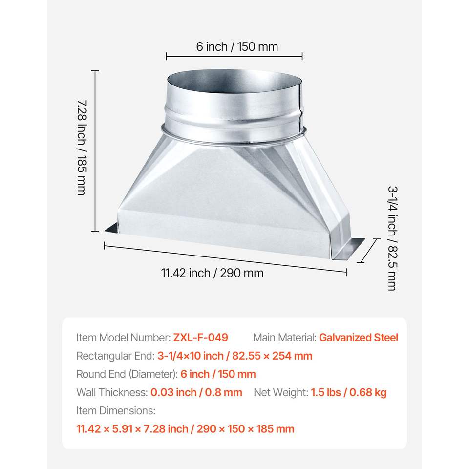 Guarnizione per Condotto Zincata 3-1/4 X 10 X 6 Pollici per Sistemi HVAC, Strumento di Transizione per Ventilazione Centrale e Griglia a Pavimento
