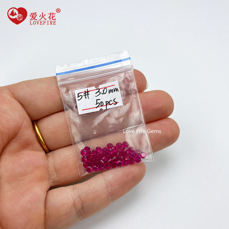 3-10mm AAA Grade Artificial Gemstone 2# 3# 5# 8# Ruby Red Color Round Shape Brilliant Cut Synthetic Corundum Ruby