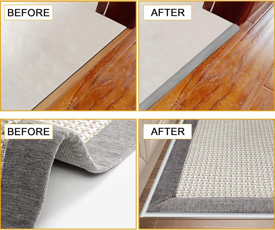Striscia di Transizione Flessibile in Gomma da 1 Metro, Bordo Autoadesivo in PVC per Laminato, Moquette, Soglia Porta