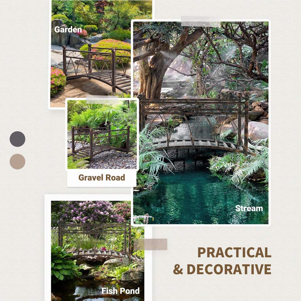 Ponte Decorativo in Metallo per Giardino Zen 3.3 con Delicati Intagli, Sfere agli Angoli e Ringhiere di Sicurezza in Acciaio