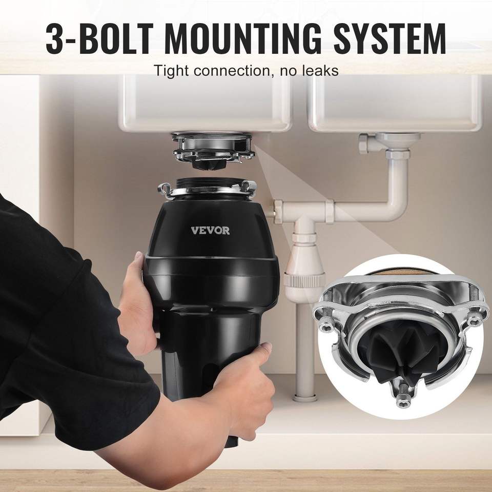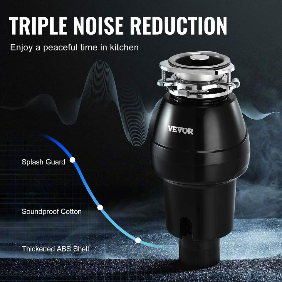 Dissipatore di Rifiuti Alimentari a Alimentazione Continua da 3/4 HP, 3260 RPM, a Bassa Rumorosità, con Montaggio a 3 Bulloni