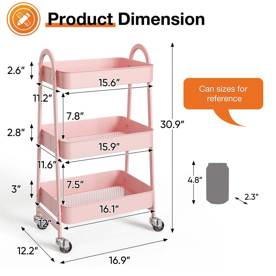 Carrello da Cucina Mobile a 3/4 Livelli con Ruote Bloccabili, Scaffale Metallico Movibile