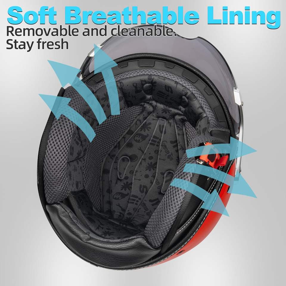 Caschi Moto 3/4 Retrò Open Face per Vespa e Scooter con Visiera Trasparente per Uomini e Donne - Approvati DOT