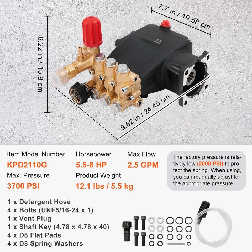 Pompa a Pistoni Triplex Orizzontale da 3/4'' per Idropulitrice ad Alta Pressione, 3700 PSI 2.5 GPM, Kit Ricambi per Idropulitrice Professionale