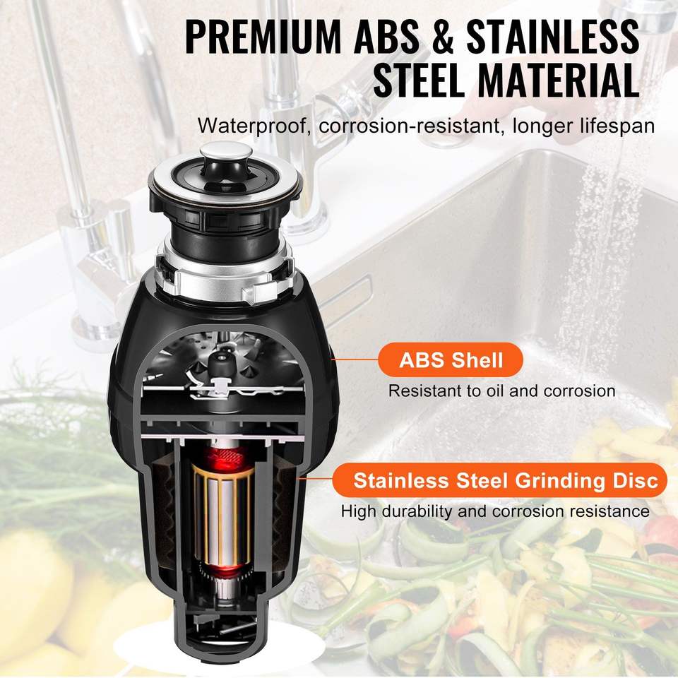 3/4HP Continuous Feed Food Waste Disposer 3250RPM Garbage Disposal with EZ Connect System Sound Reduction Easy Installation