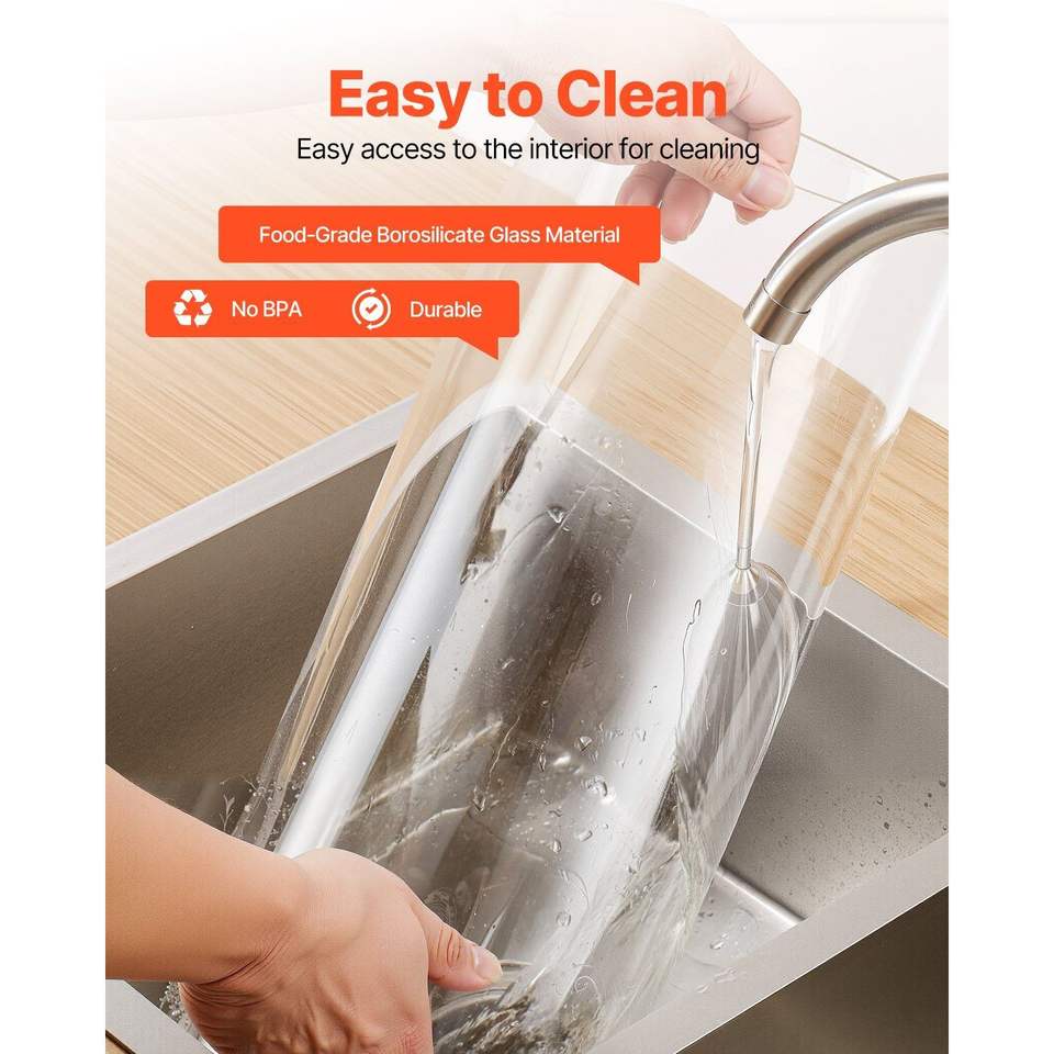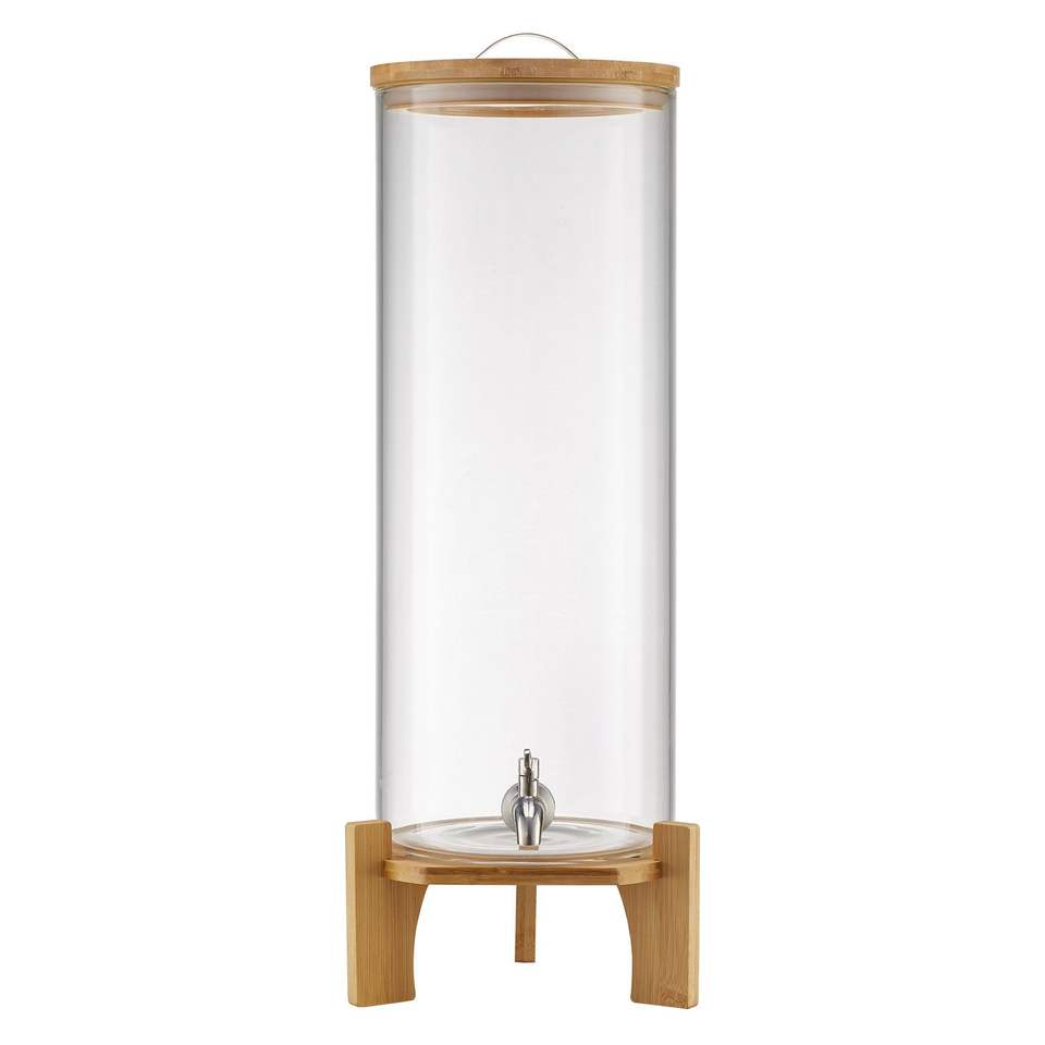 Dispenser per Bevande da 3,5 Galloni con Rubinetto in Acciaio Inox, Dispenser per Succhi in Vetro, Supporto in Legno, Kit per Feste con Ghiaccio