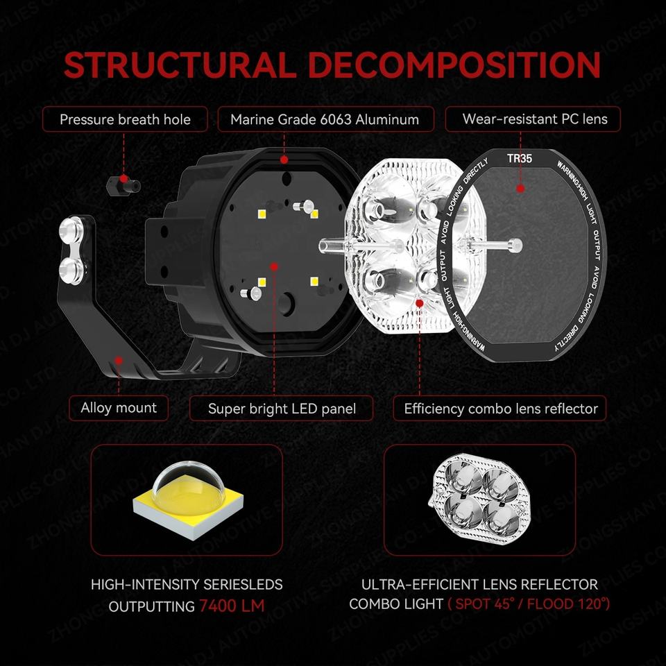 Faro da Lavoro LED 3.5 Pollici 35W Super Luminoso IP68 Impermeabile per ATV UTV Moto, Luce Laterale Antinebbia per Auto 4x4
