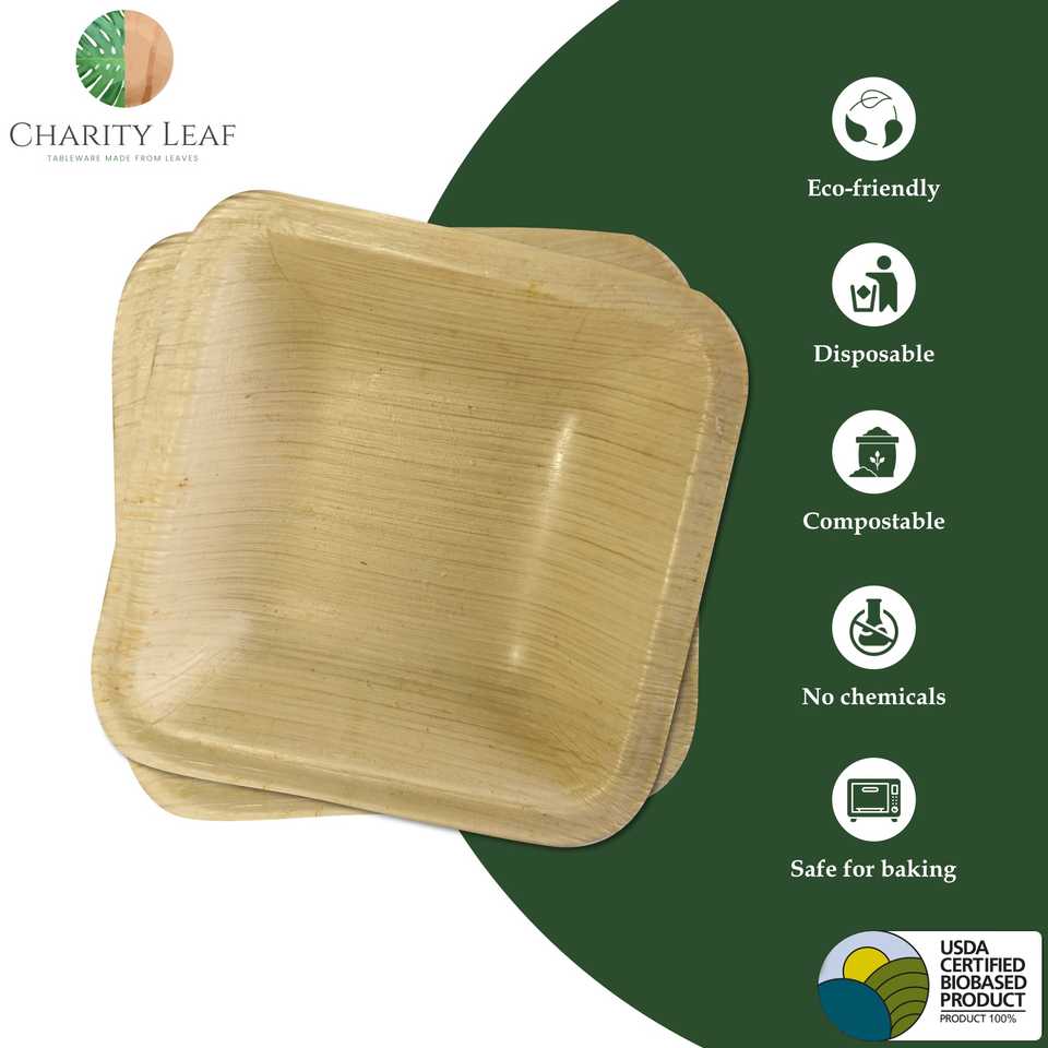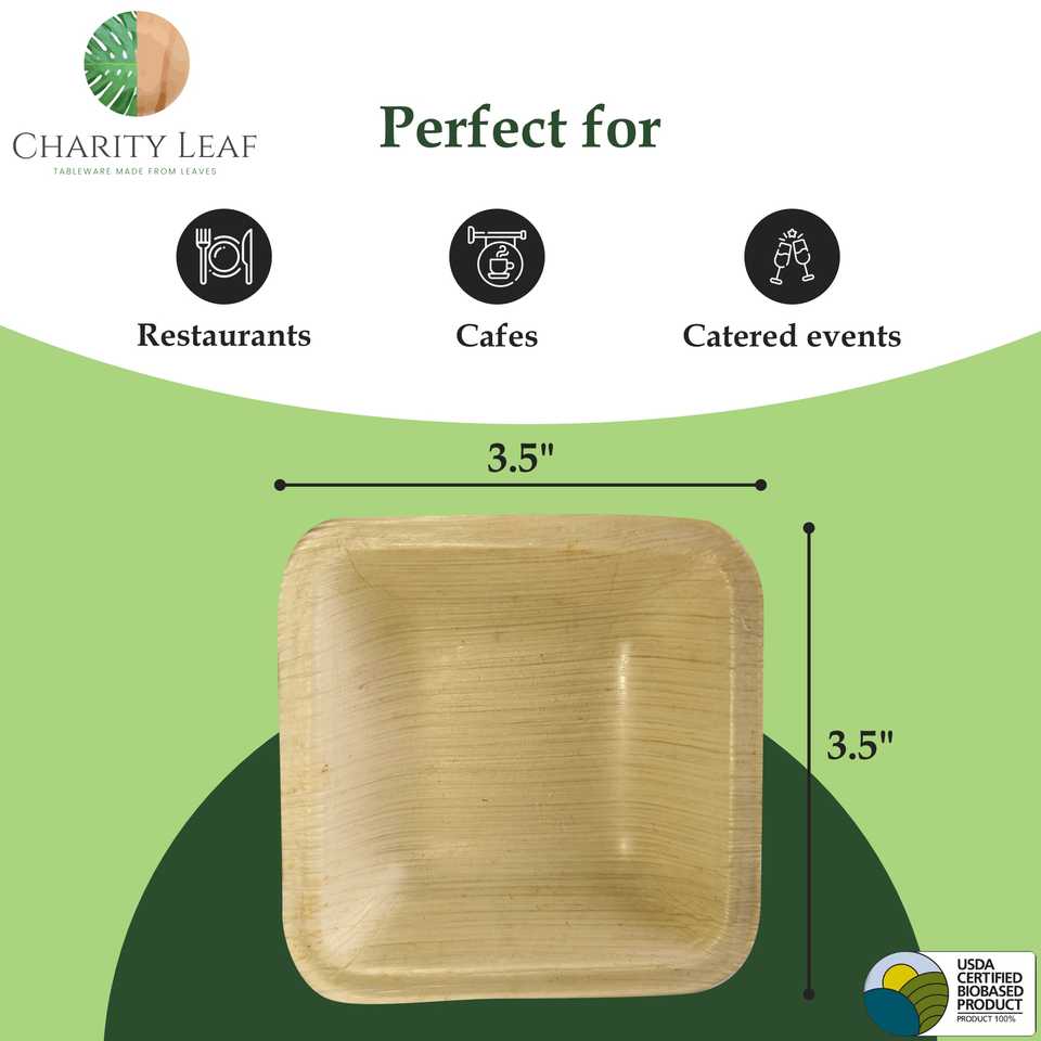 Ciotola Quadrata Mini in Foglia di Palma Naturale da 3,5 Pollici, 2,5 Oz, Prodotto Usa e Getta