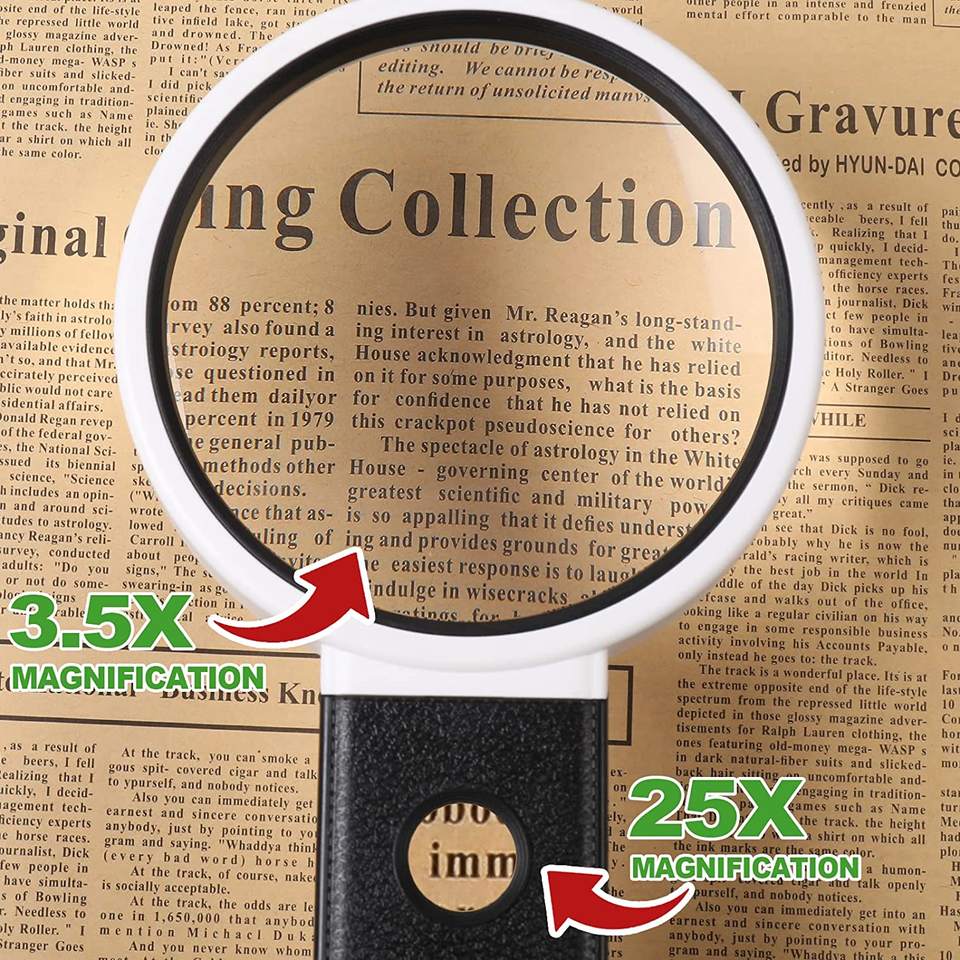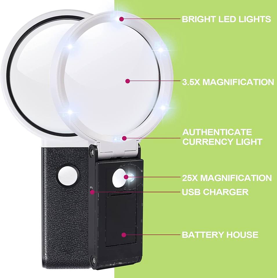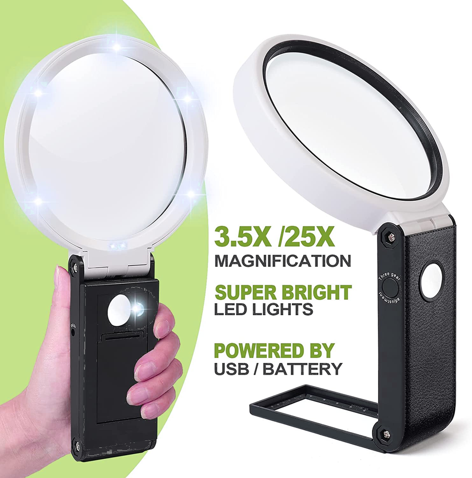 Lente d'ingrandimento pieghevole regolabile con lenti d'ingrandimento a scala 3,5x 25X illuminata