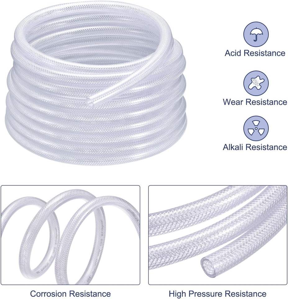 3/8" ID X 5/8" OD 25 Ft PVC Braided Reinforced Flexible Hose Pipe High Pressure Clear Tube