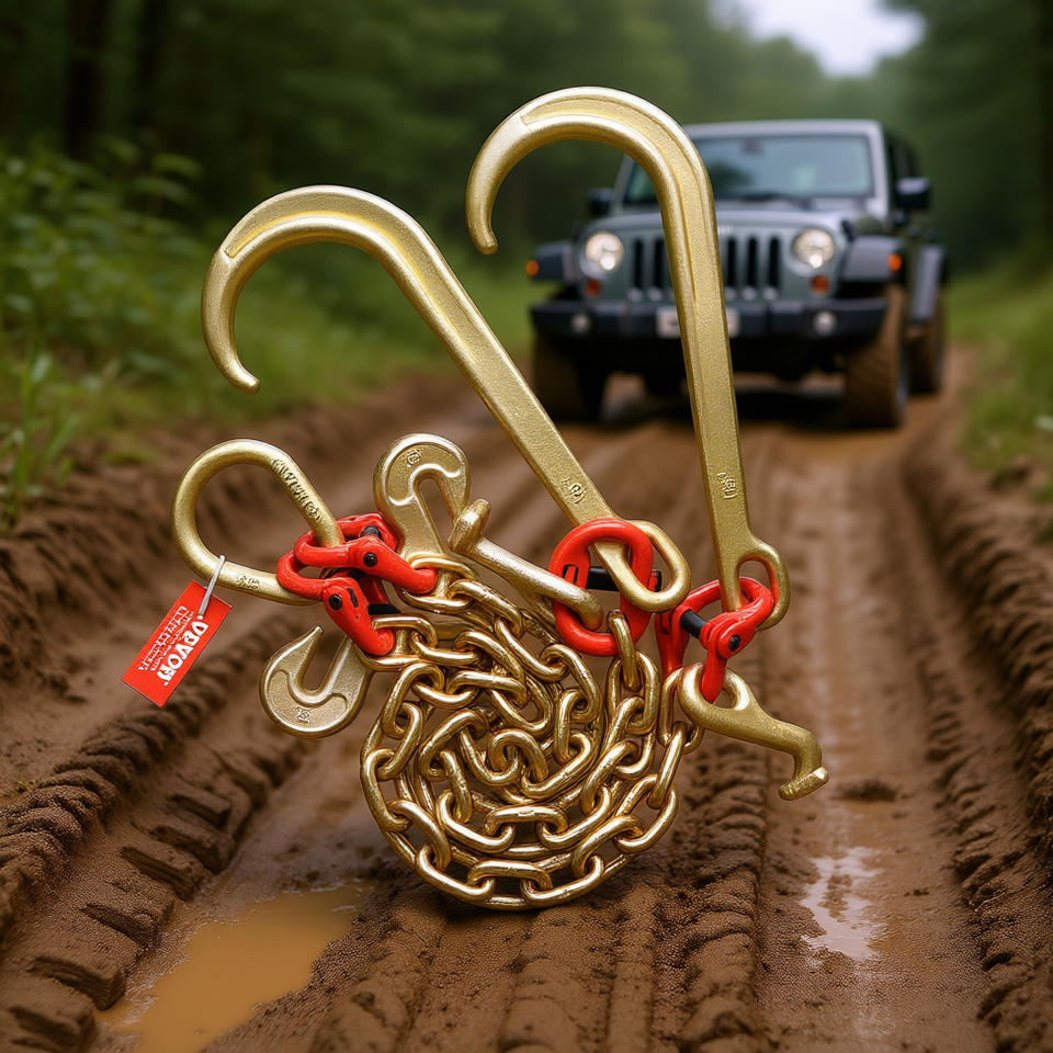 Catena di traino G80 da 3/8 x 2 piedi con gancio a J, catena a V, gancio a T per carro attrezzi, capacità 15600 libbre