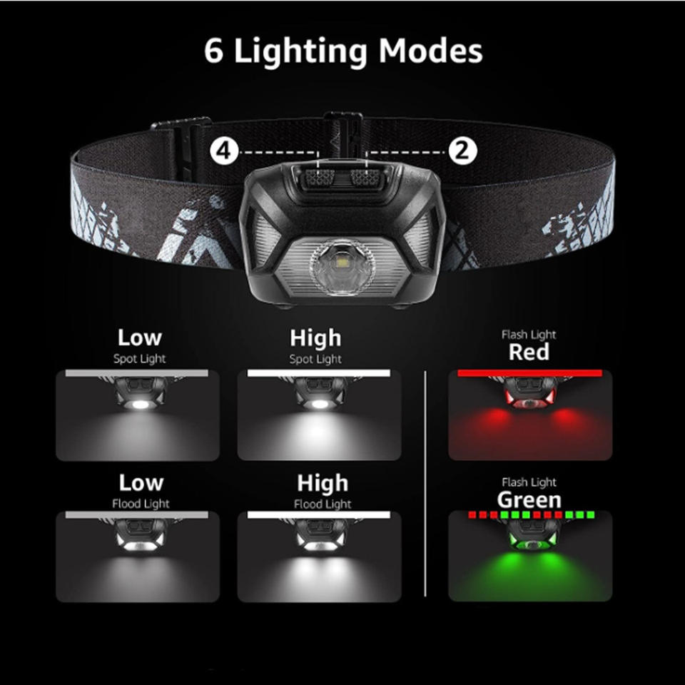Lampada Frontale a Batteria 3*AAA Super Luminosa con Luce Bianca+Luce Rossa+Luce Verde Torcia con Fascia Regolabile