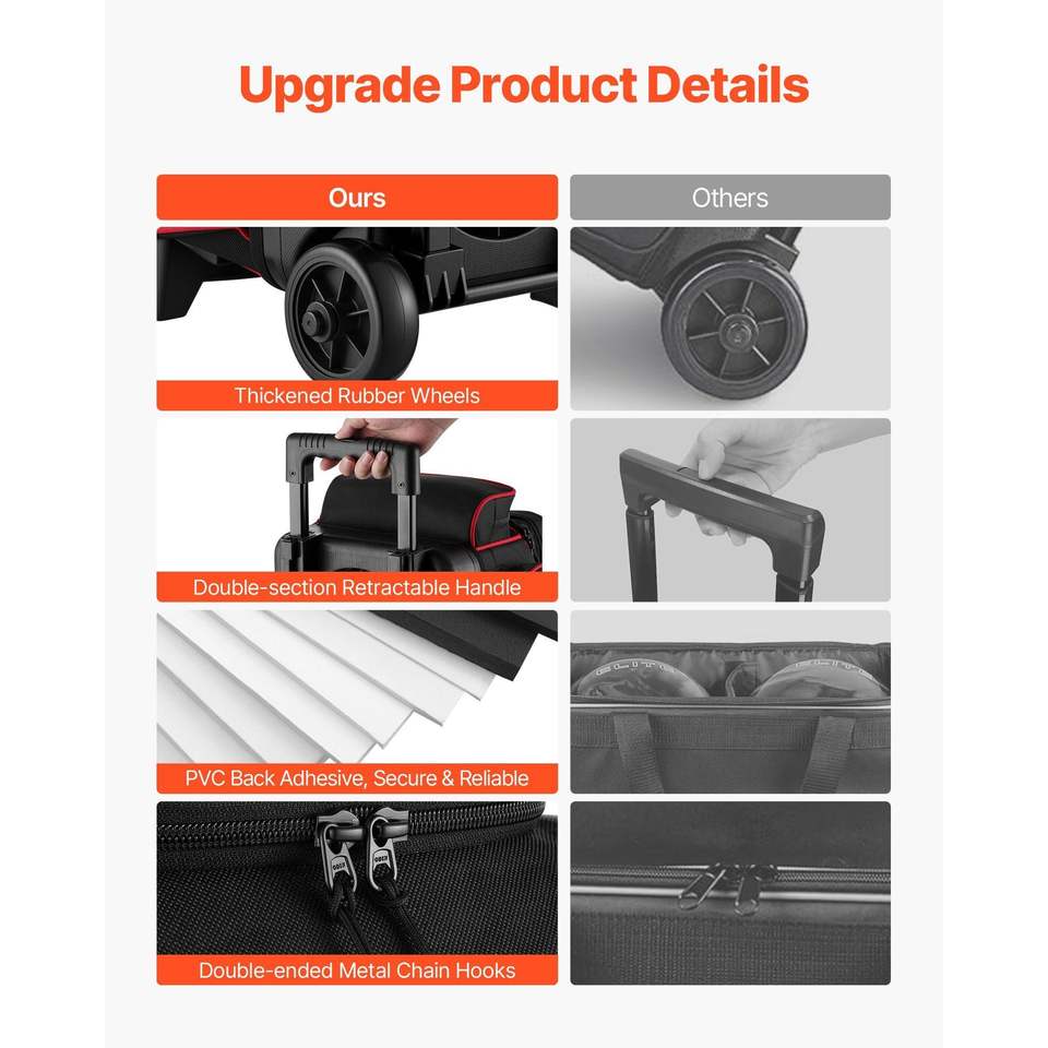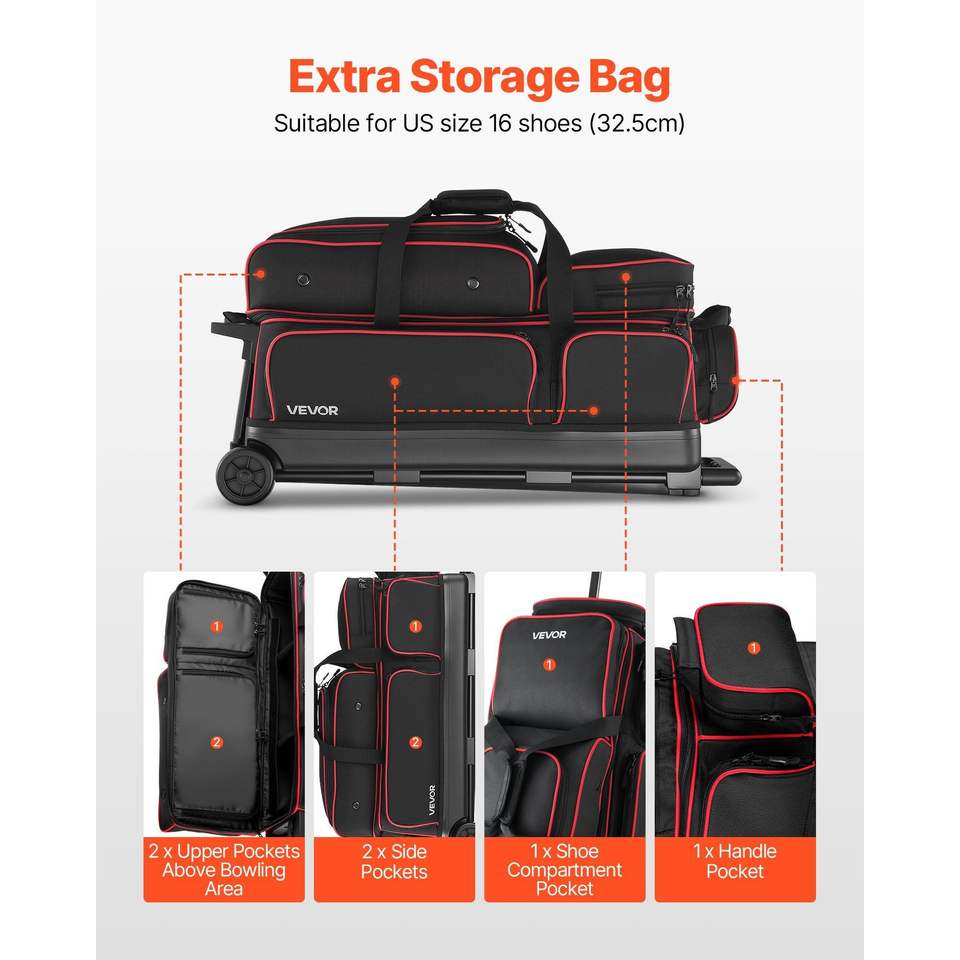 3 Ball Double Roller Bowling Ball Bag with Wheels Featuring a Separate Compartment for Shoes up to US Size 16