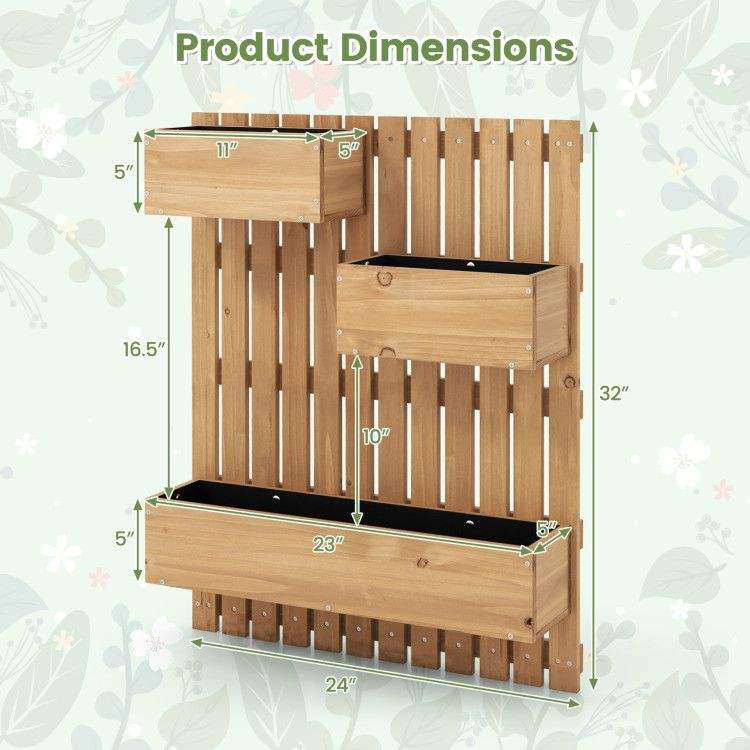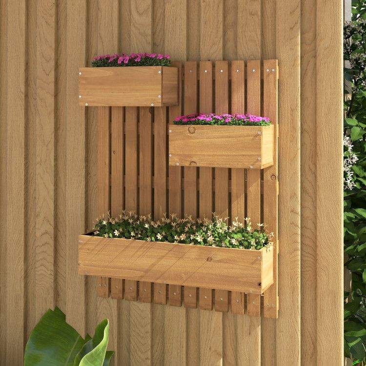 Set di 3 Fioriere Rialzate in Legno con Tralicci e Rivestimenti in Tessuto per Vasi e Fioriere