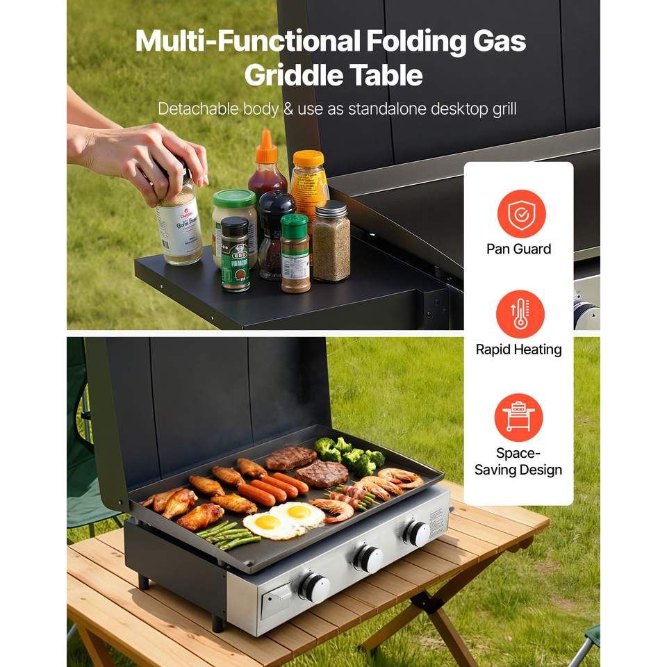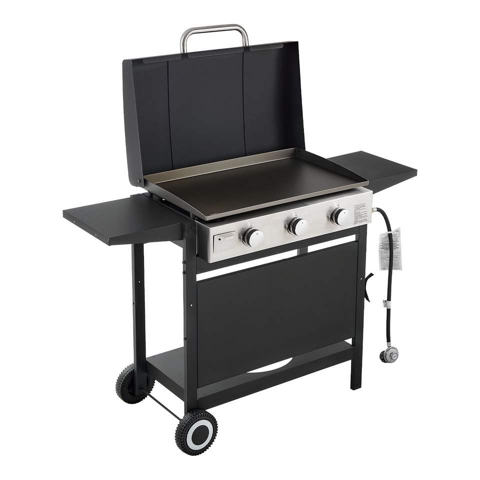 Griglia a Gas Propano a 3 Bruciatori 11000 BTU per Esterni, Piastra Piatta per Frittura - Ideale per Campeggio