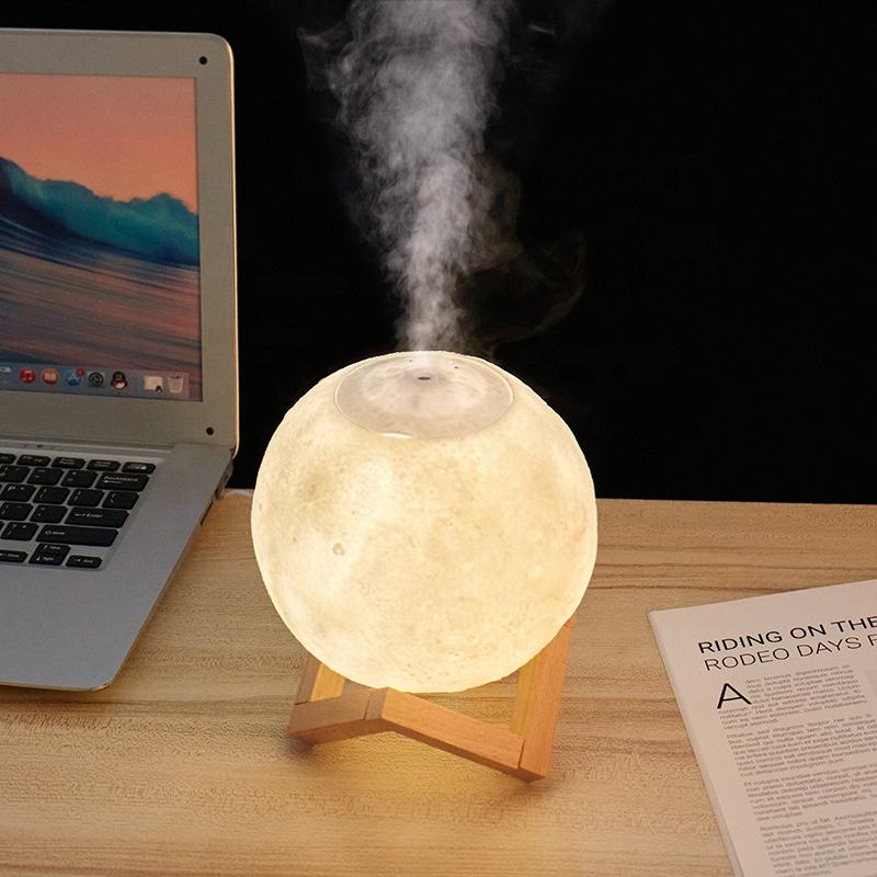 3 colori che cambiano stampa 3D Planet Touch lampada per bambini a forma di luna piena decorazione a Led Base in legno umidificatore USB con luce notturna
