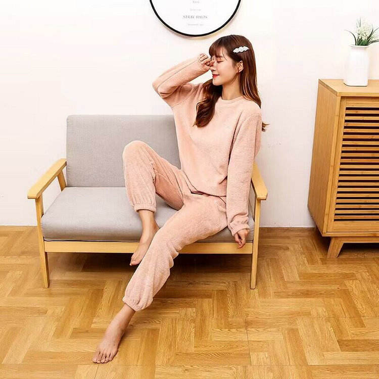 3 Dollar Model RCK001 Ladies Soft Fluffy Fleece Pullover Pants Loose Pajamas Set for Pyjamas Women's Sleepwear