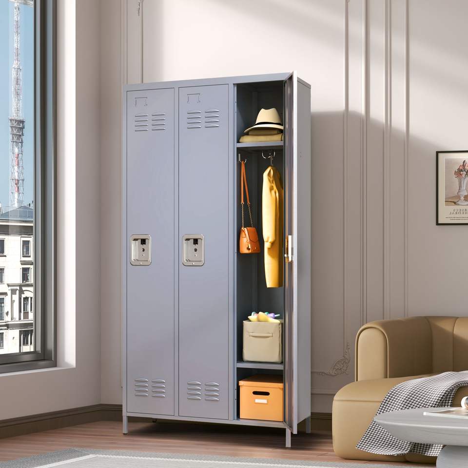 Armadietto Metallico Grigio a 3 Ante da 72 Pollici con Serratura, Armadietti per Casa, Palestra, Ufficio, Scuola o Garage per Dipendenti