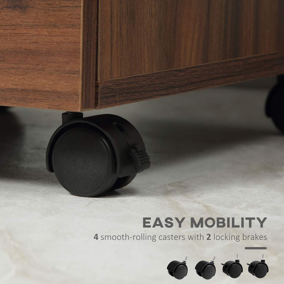 Mobiletto Portadocumenti a 3 Cassetti Marrone Effetto Legno, Supporto Stampante con Ruote, Armadietto Verticale per Archiviazione