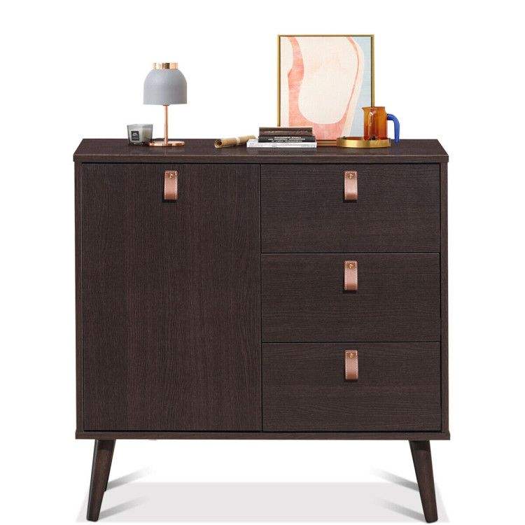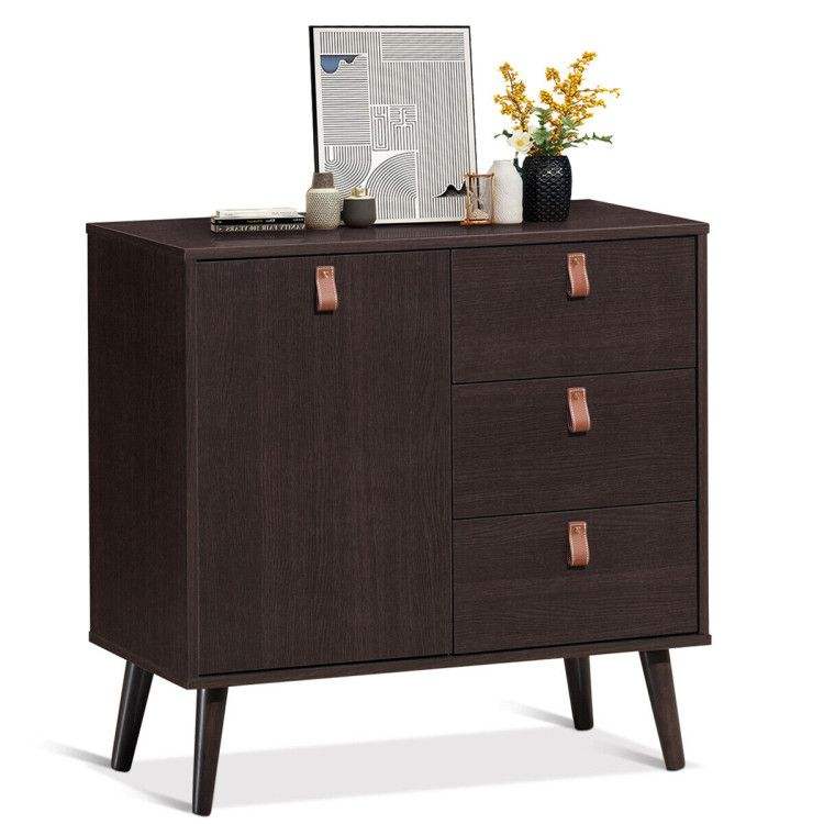 Credenza a 3 cassetti per soggiorno con spazio contenitivo e vetrina
