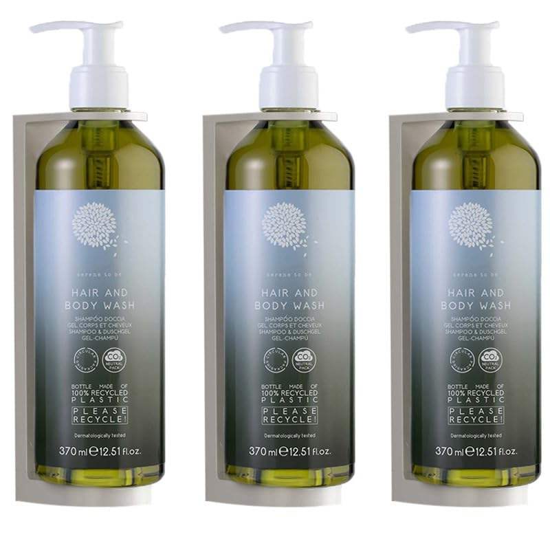 3 Eco-Friendly 370ml Refillable Shower Shampoo Bottles Recycled Plastic Green Wall Dispenser for Hotels and Restaurants