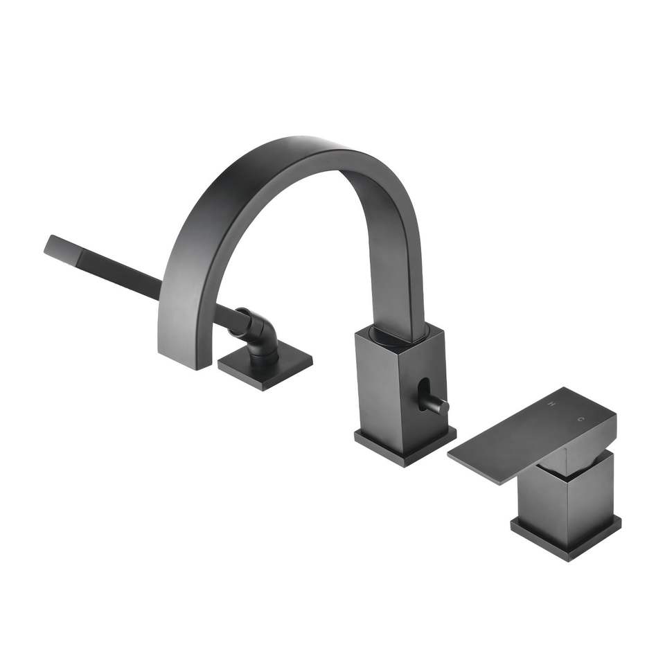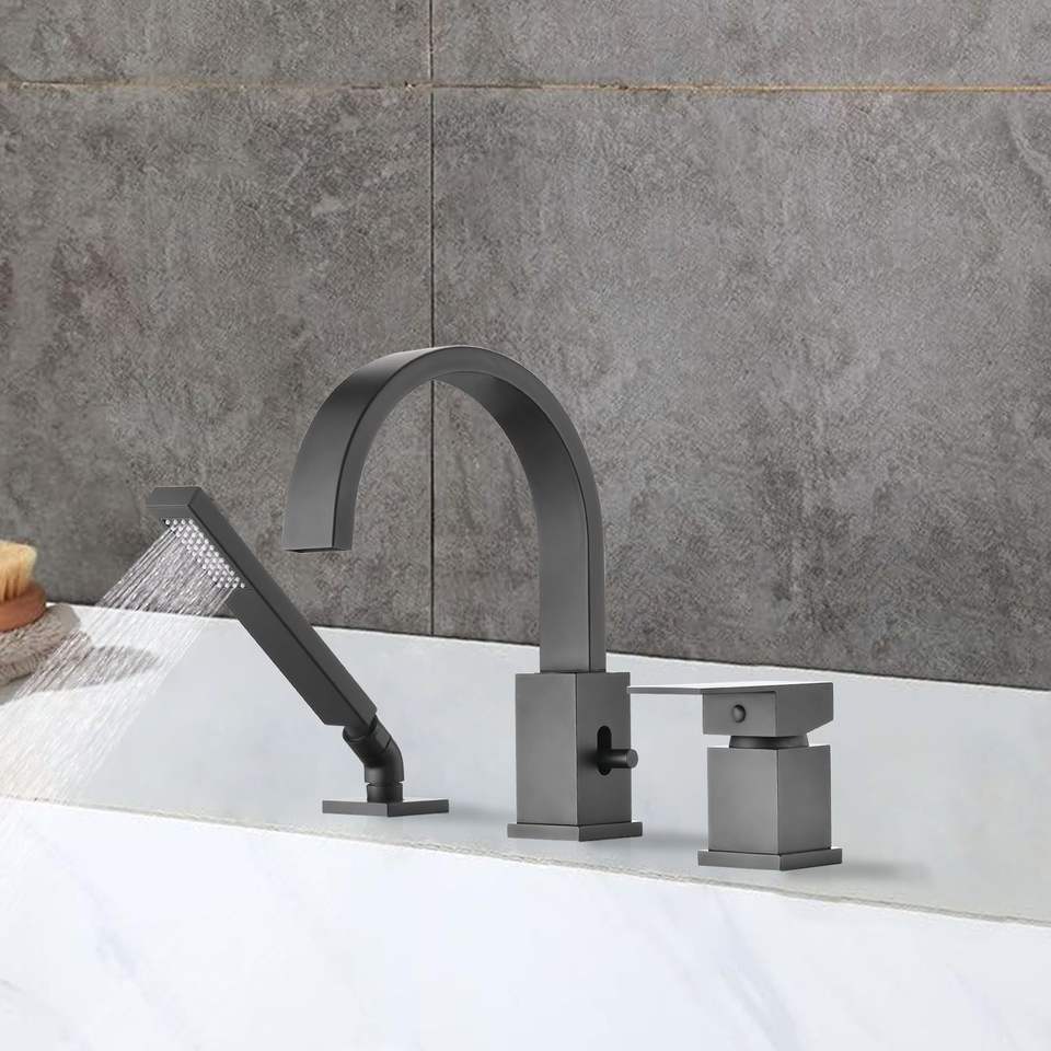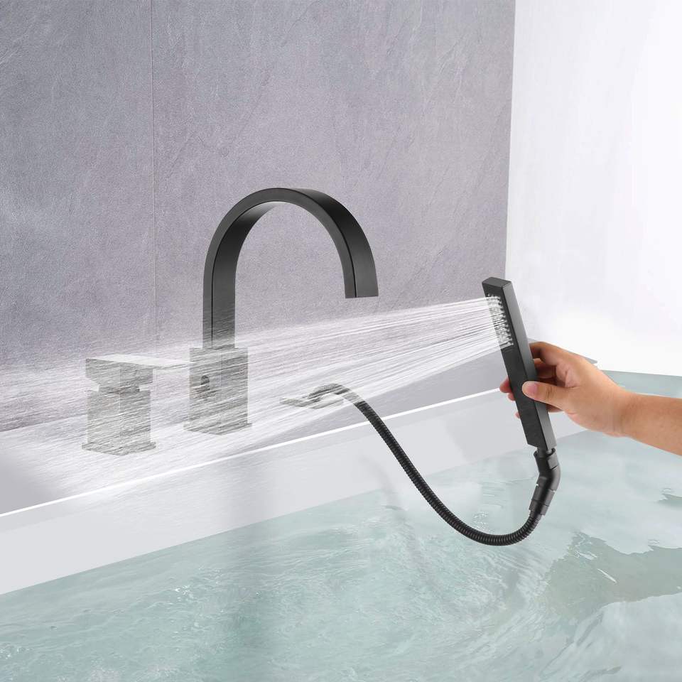 Set rubinetto vasca idromassaggio a 3 fori con doccetta e soffione a cascata, montaggio su piano, per bagno e doccia