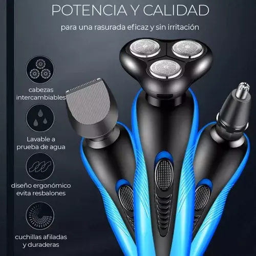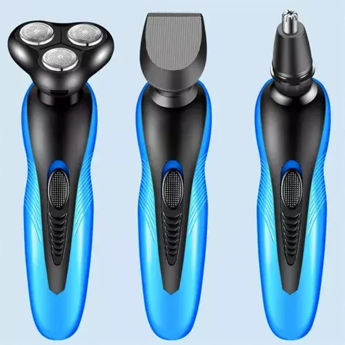Rasoio elettrico 3 in 1 con testine girevoli a tripla lama, batteria ricaricabile, impermeabile IPX7, per la rifinitura di barba, peli, naso e orecchie.