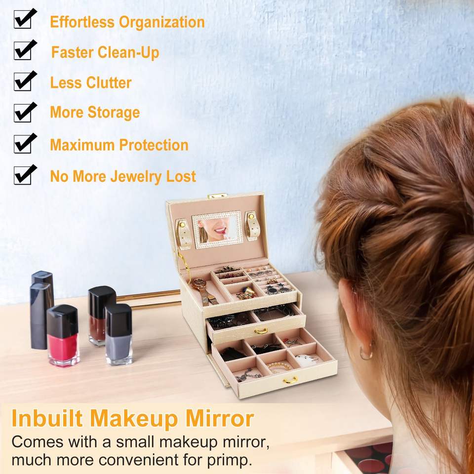 Portagioie da Viaggio a 3 Livelli con Chiusura, Organizzatore Protettivo in Pelle PU con Specchio