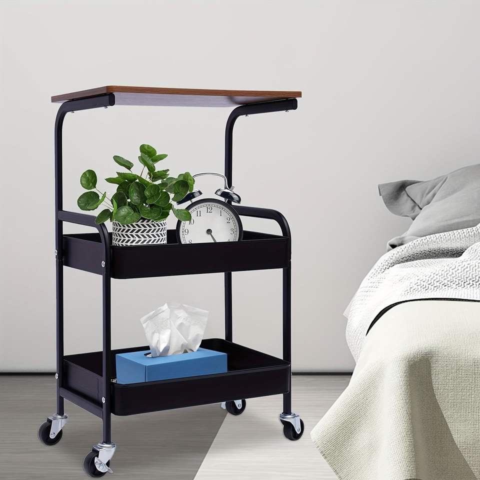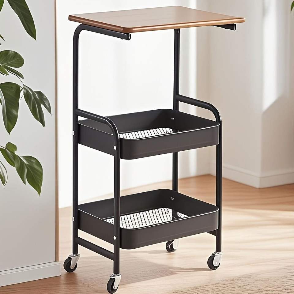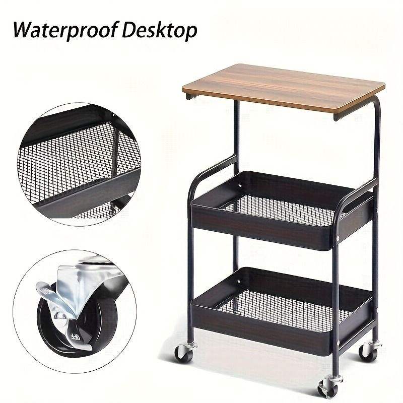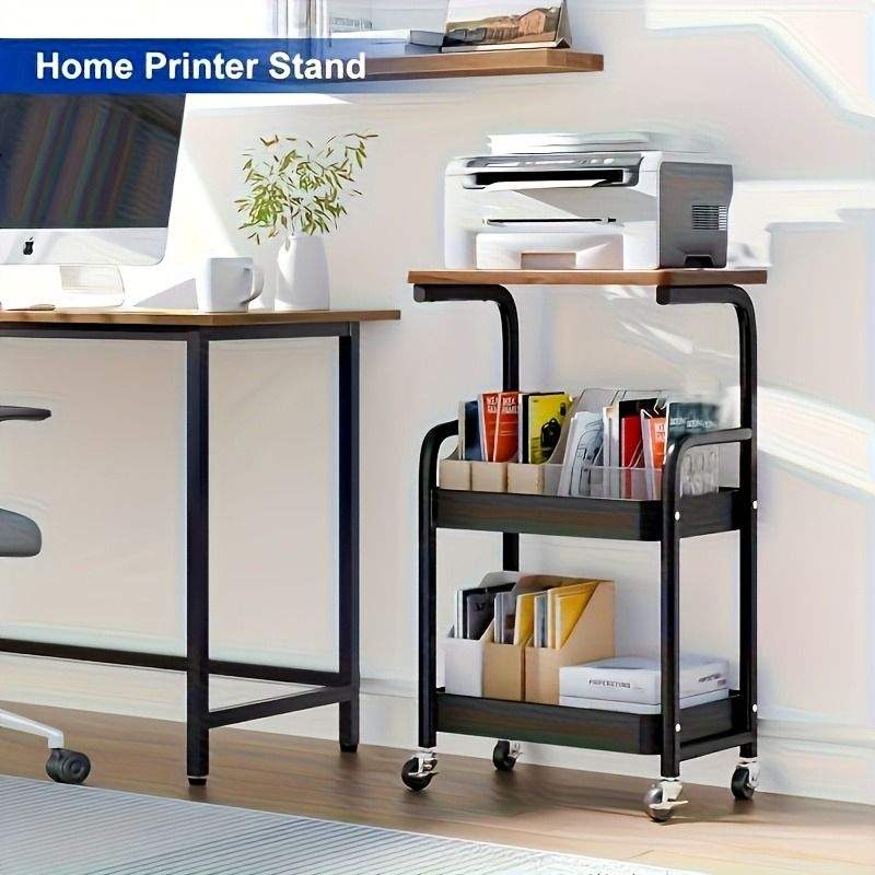 Carrello portaoggetti multiuso in metallo a 3 strati con piano in legno, supporto per stampante a 3 livelli su ruote, scaffale mobile premium